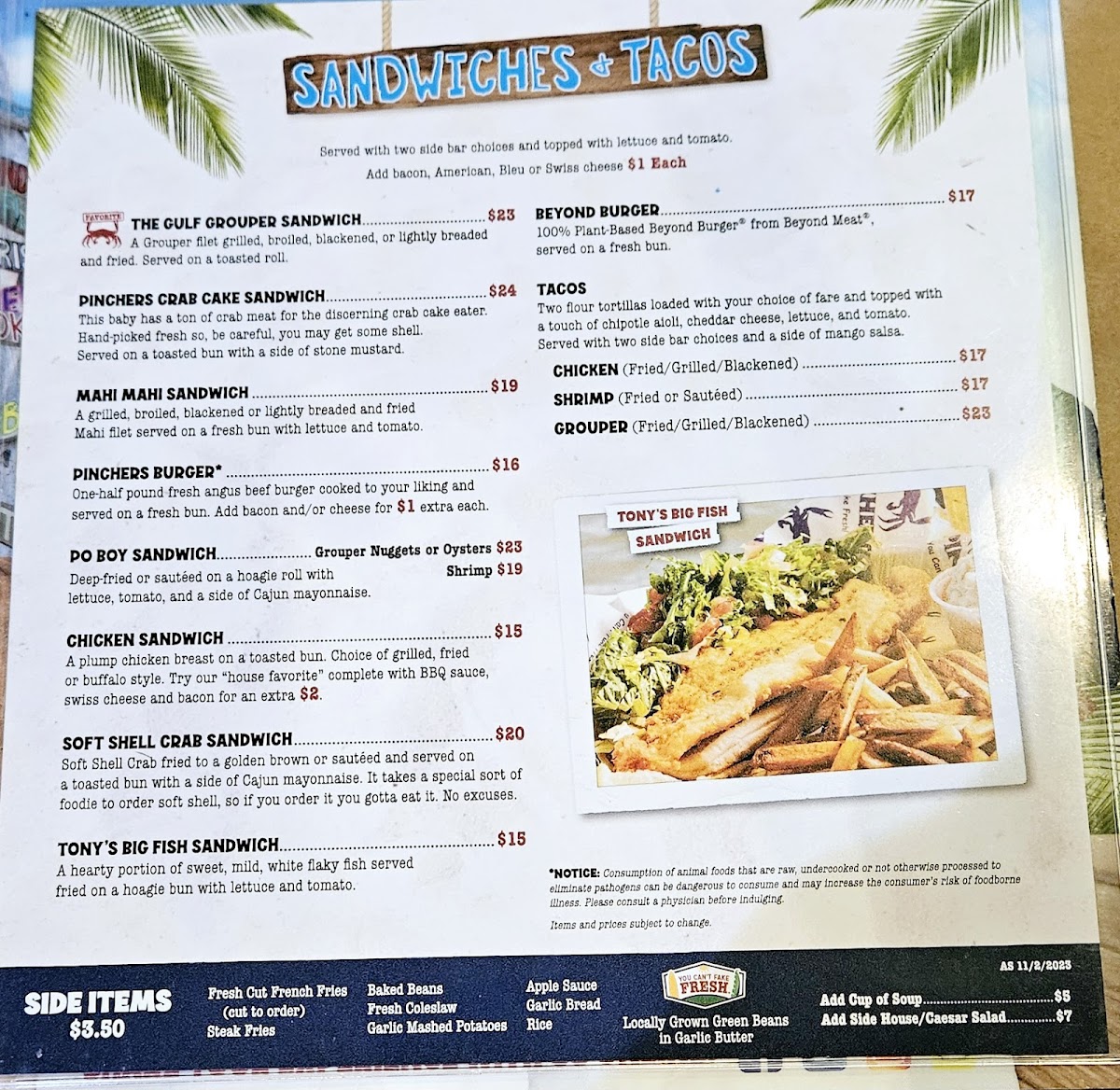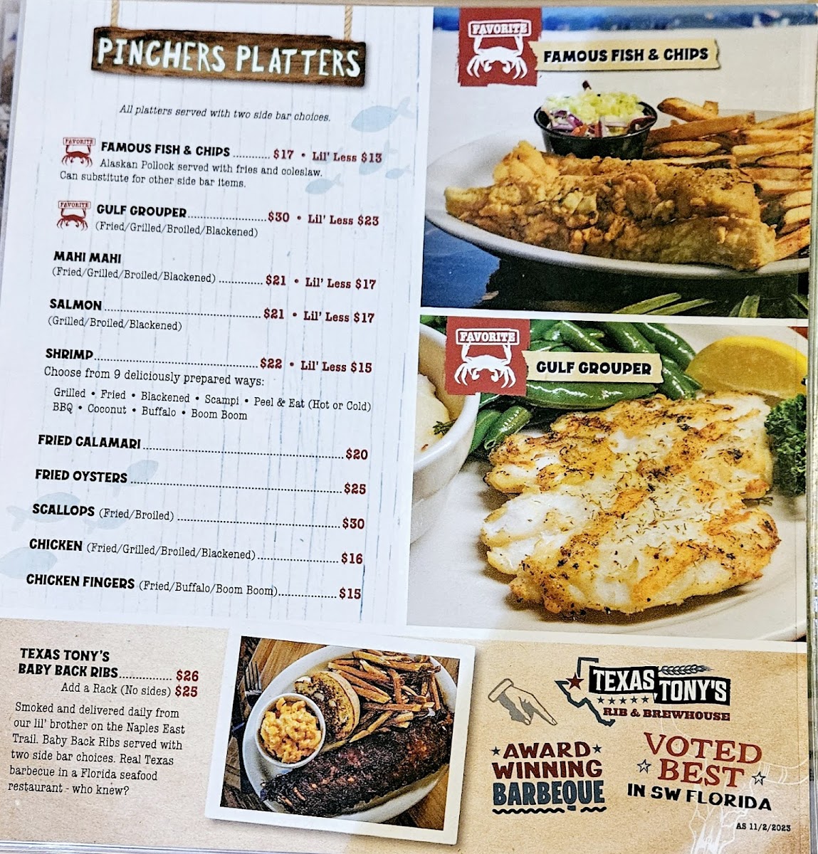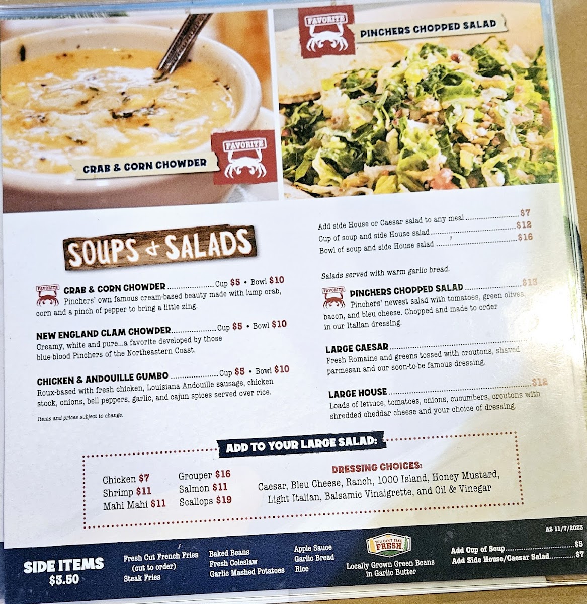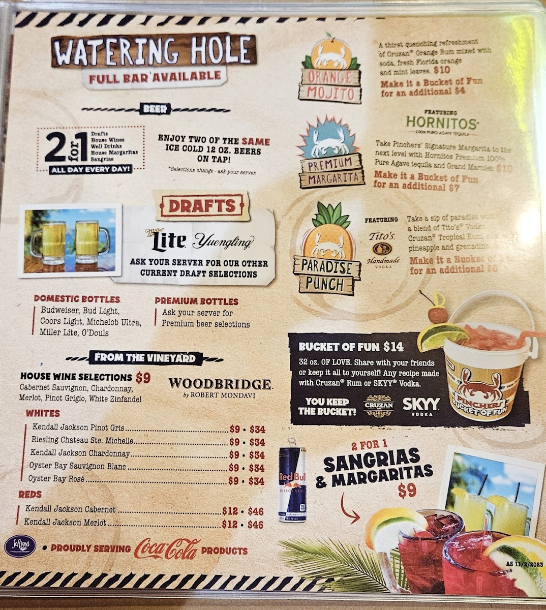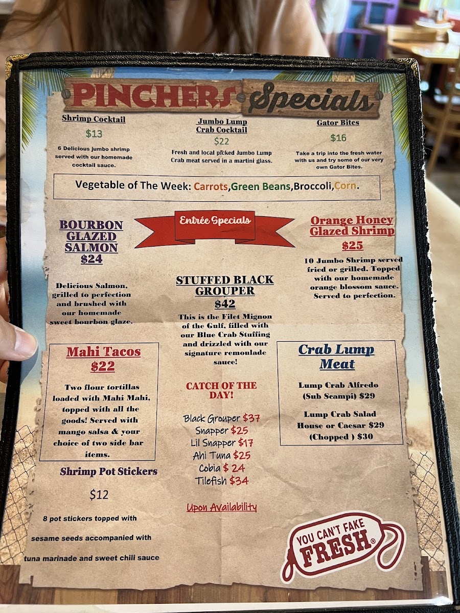Pinchers Menu